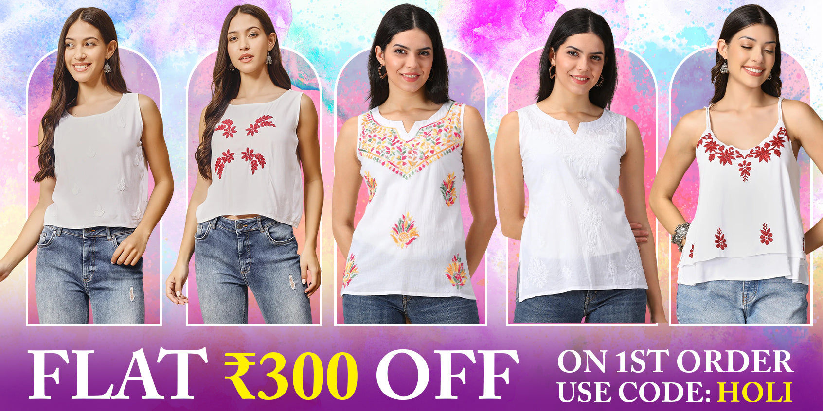 Women White Chanderi Hand Embroidered Chikankari Short Kurta