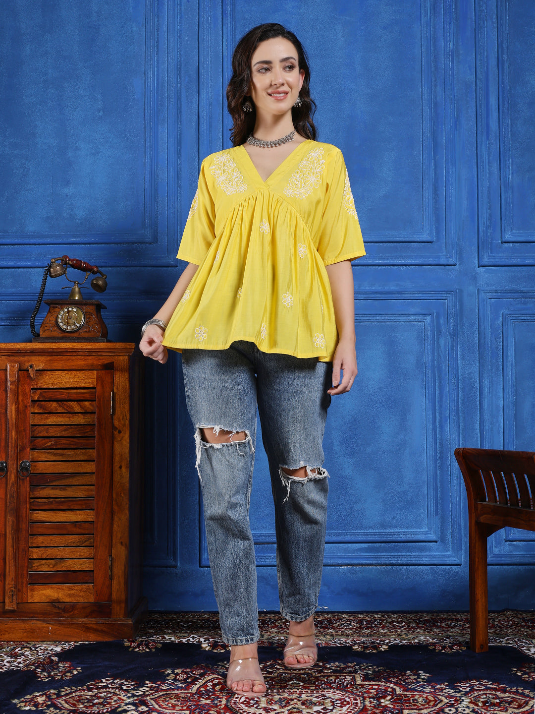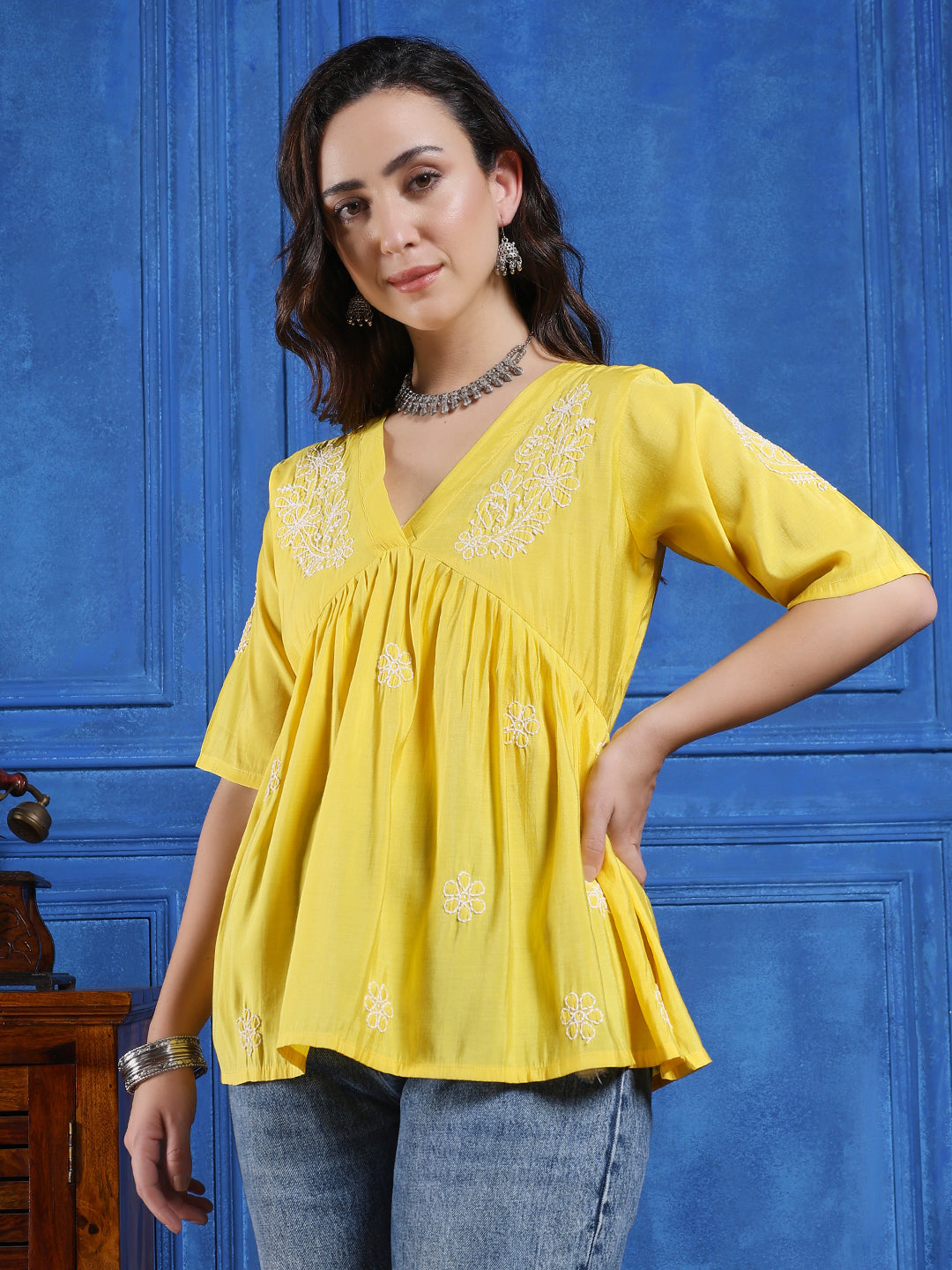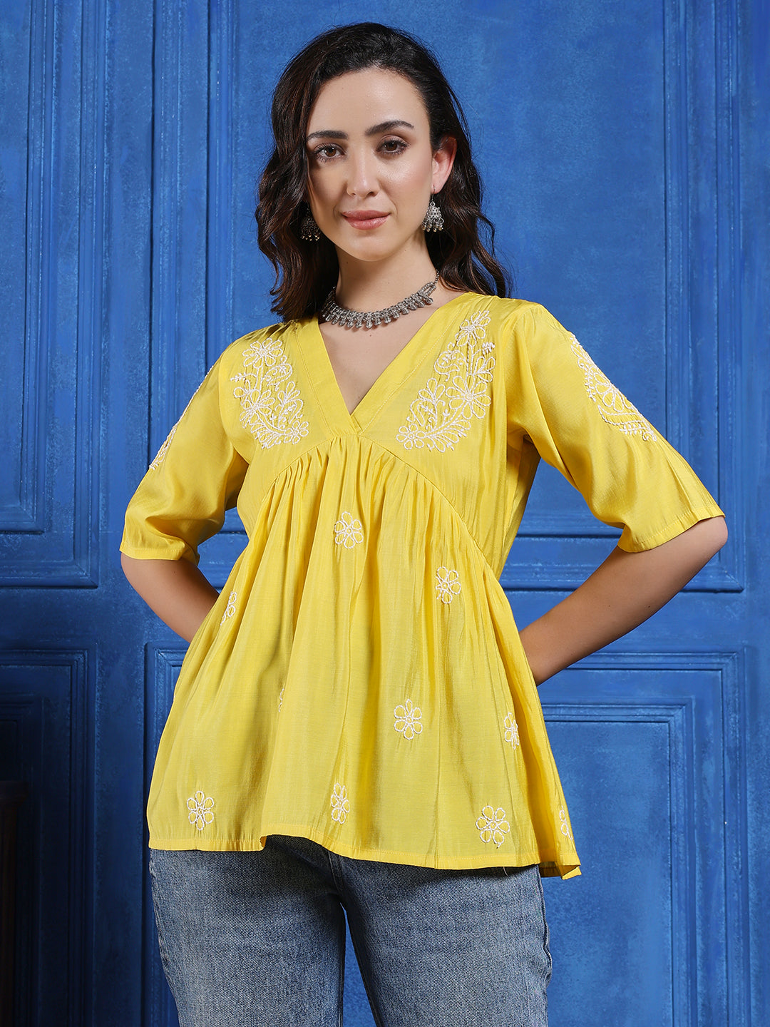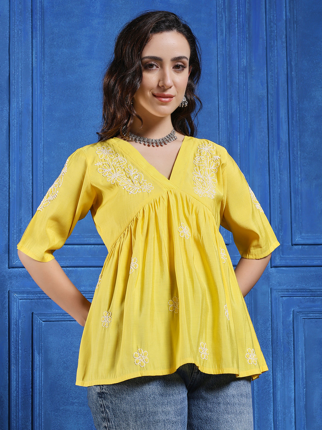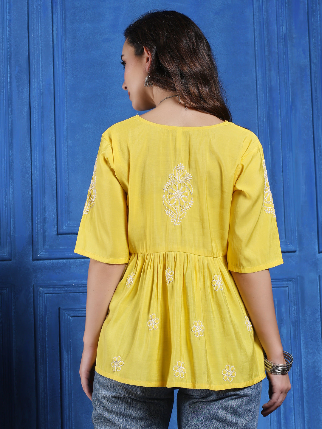 We use high-quality fabrics like cotton, Modal,Rayon, and chanderi to make our chikankari kurtis. This ensures comfort, durability, and a premium look.